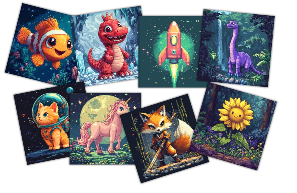 Sure, our tool lets you use any image. But for the cleanest, sharpest, and most vibrant results, pixel art is the top choice. This pack gives you a massive library designed to get the best output possible, without trial and error.