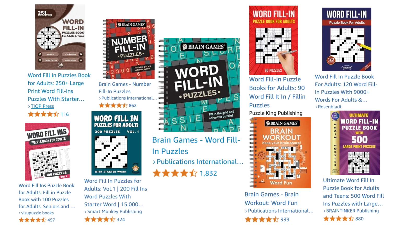 From brain-training challenges to themed word packs covering animals, travel, sports and more, these books are showing up everywhere. And they are selling fast. Scroll through the rankings and you’ll see them right next to the biggest puzzle book titles. Thousands of five-star reviews. Thousands of happy buyers. And fresh new books launching almost every single day.