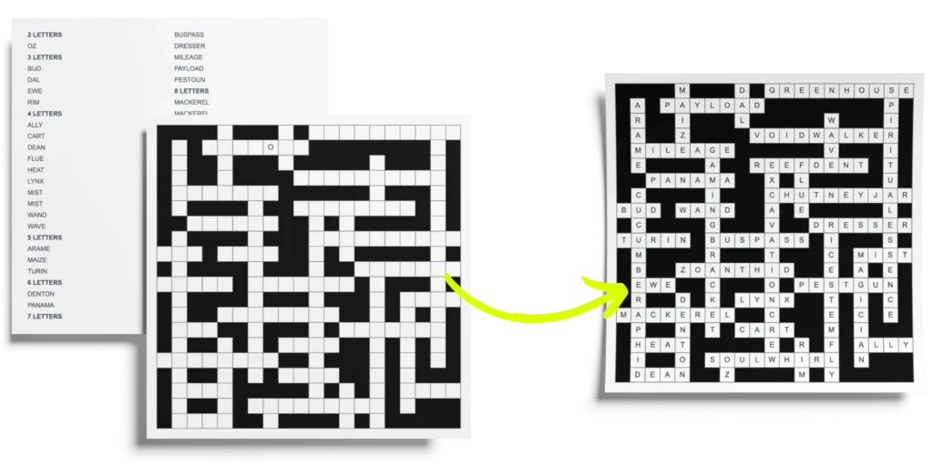 This is the ultimate shortcut. Drop in any word list and watch it transform into a professional Word Fill-in puzzle page in minutes. No stress. No guesswork. No formatting nightmares.
